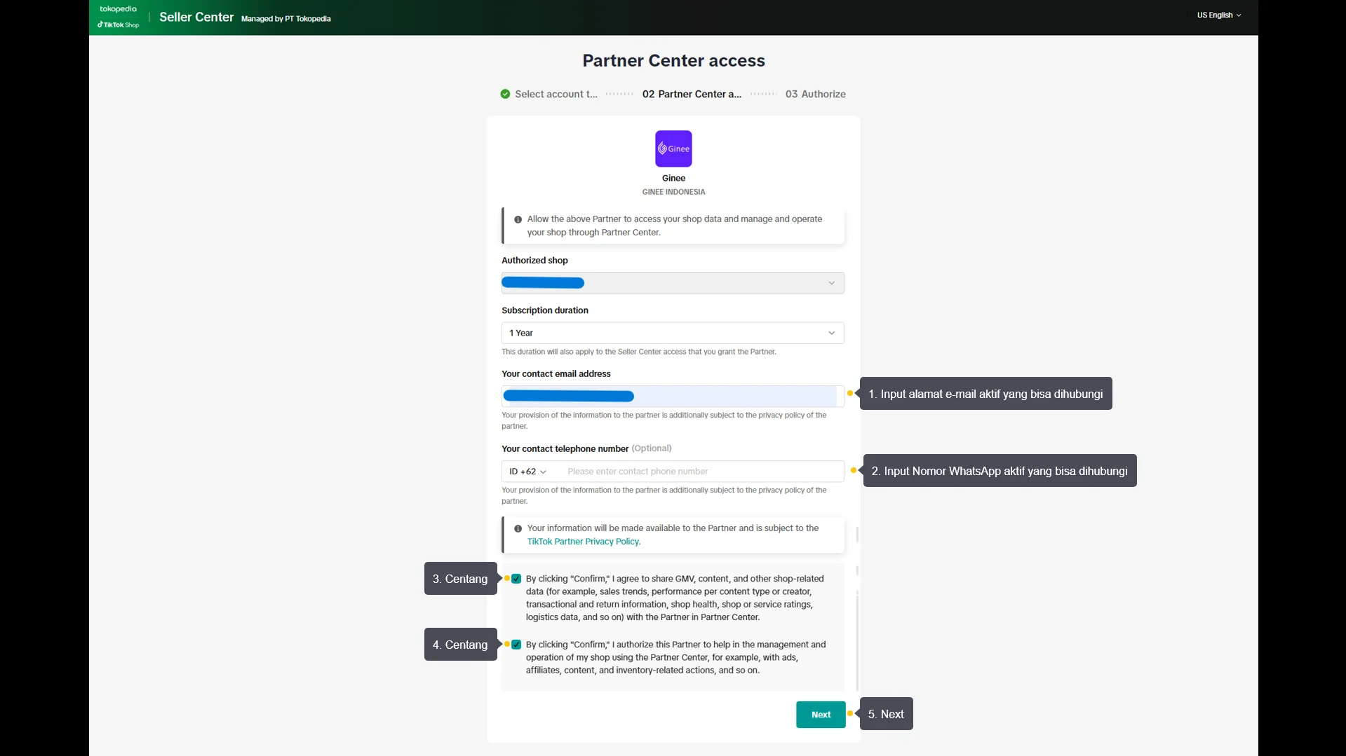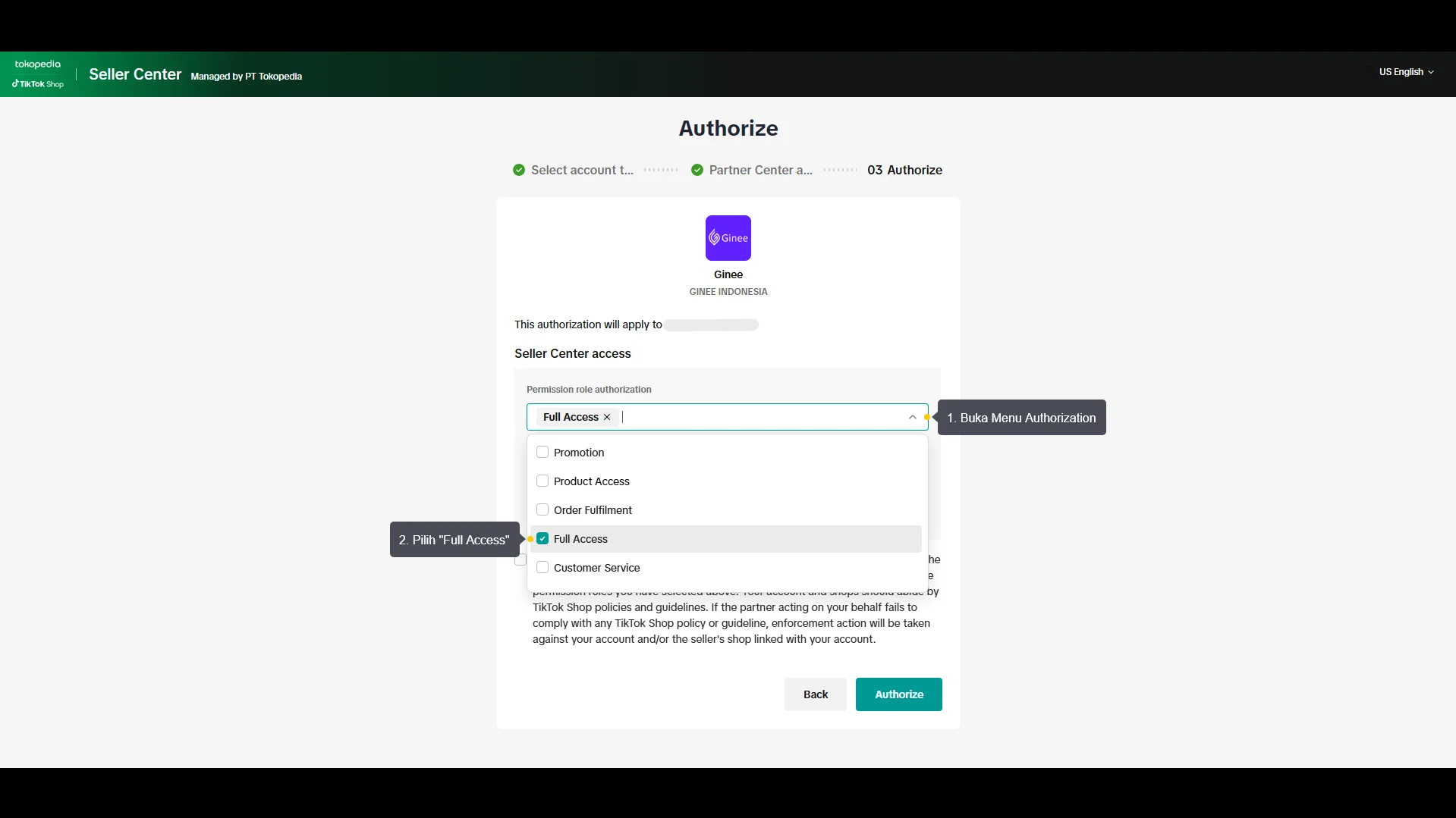 Binding / Otorisasikan akun ShopTokopedia dengan Ginee TSP
